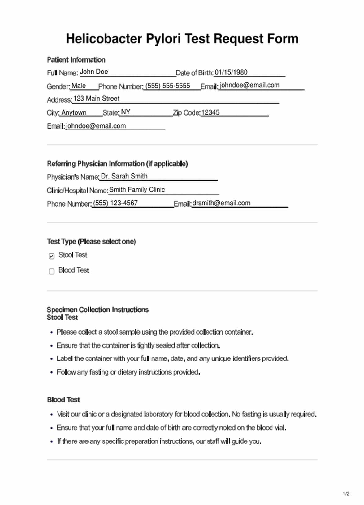 Streamline Helicobacter Pylori testing with our comprehensive template. Easily collect patient data and enhance clinical efficiency.