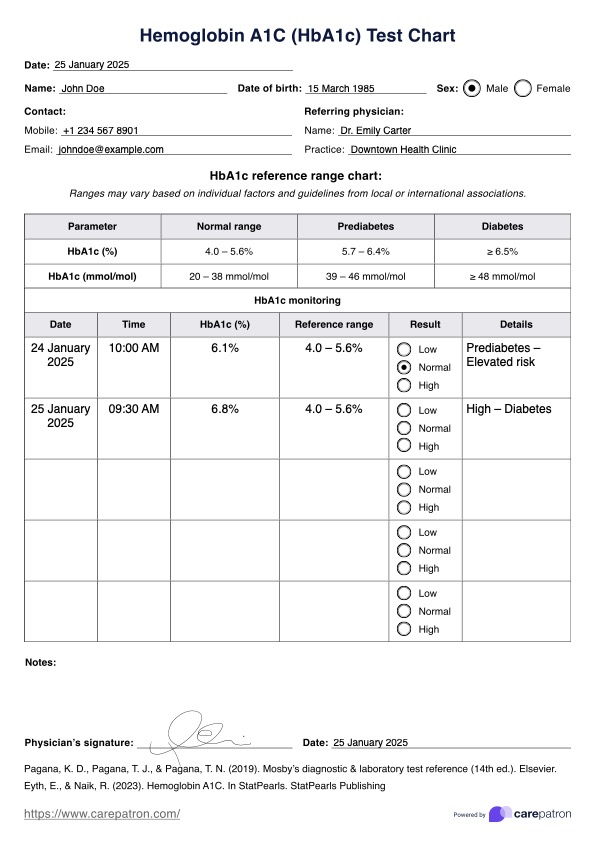 The HbA1c test measures the percentage of glycated hemoglobin in the patient’s blood, providing a snapshot of their average blood glucose levels over the past 2–3 months. It’s an essential tool for identifying how well blood sugar is controlled, whether low blood glucose is an issue, and for determining when diabetes develops. By showing how much glucose attaches to hemoglobin, the test helps guide treatment and assess the risk of complications.
