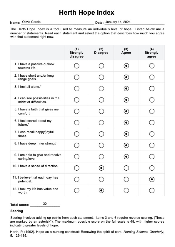 Explore the Herth Hope Index (HHI), a reliable tool used to measure hope in patients. Access a free PDF template here.