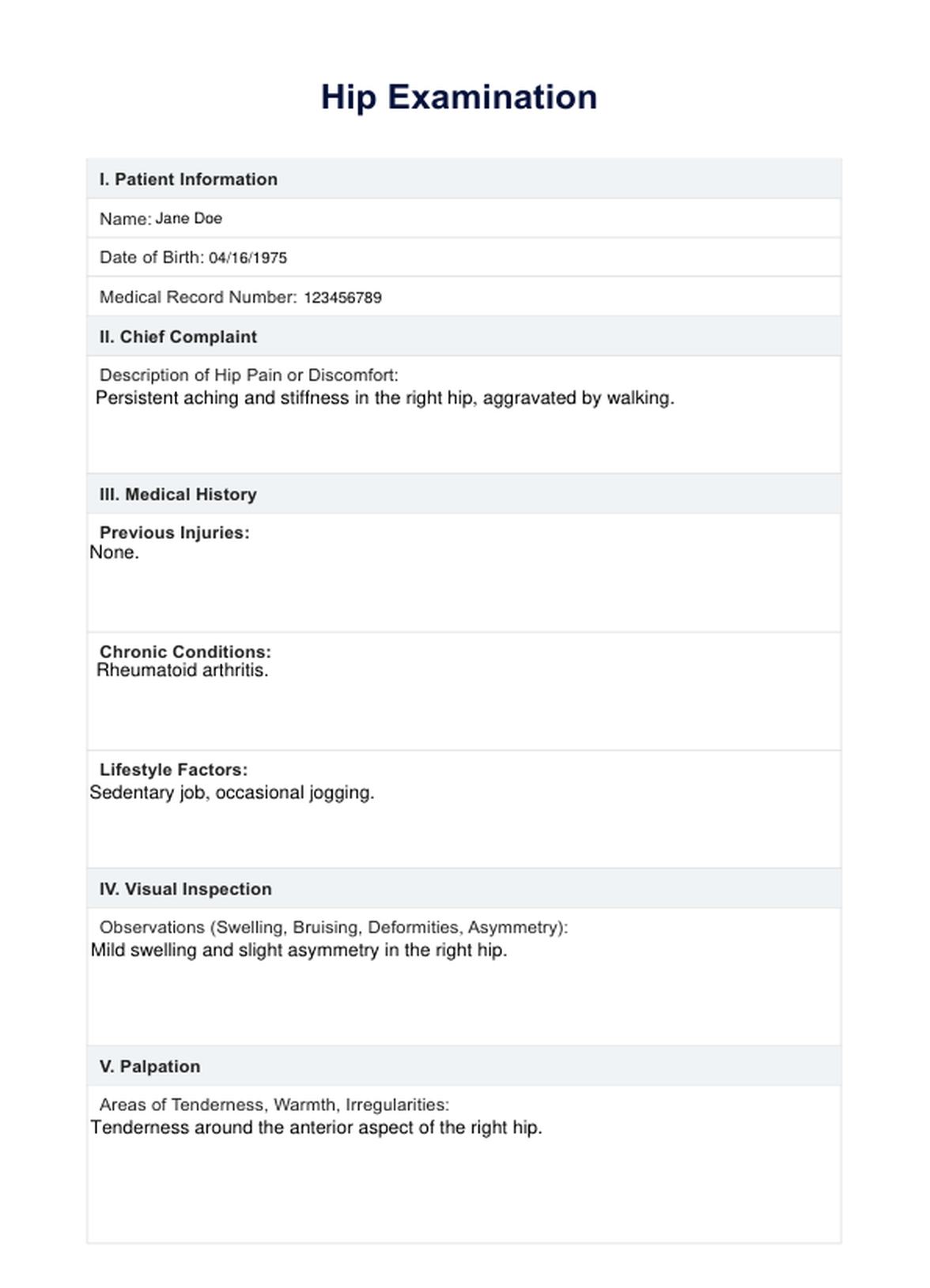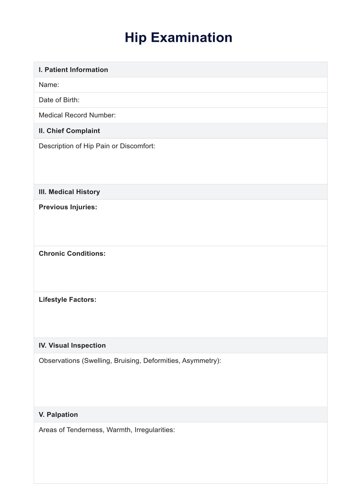 Explore the comprehensive Hip Examination Template for accurate assessments, diagnosis, and treatment of various serious hip disorders, and injuries.