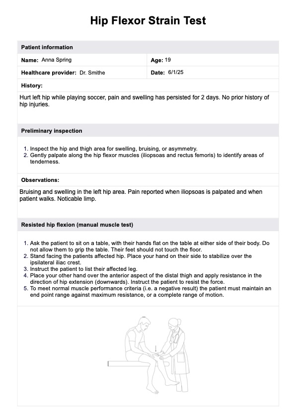 Access our Hip Flexor Strain Test template, a detailed guide for healthcare professionals assessing hip flexor strains with physical examination techniques.