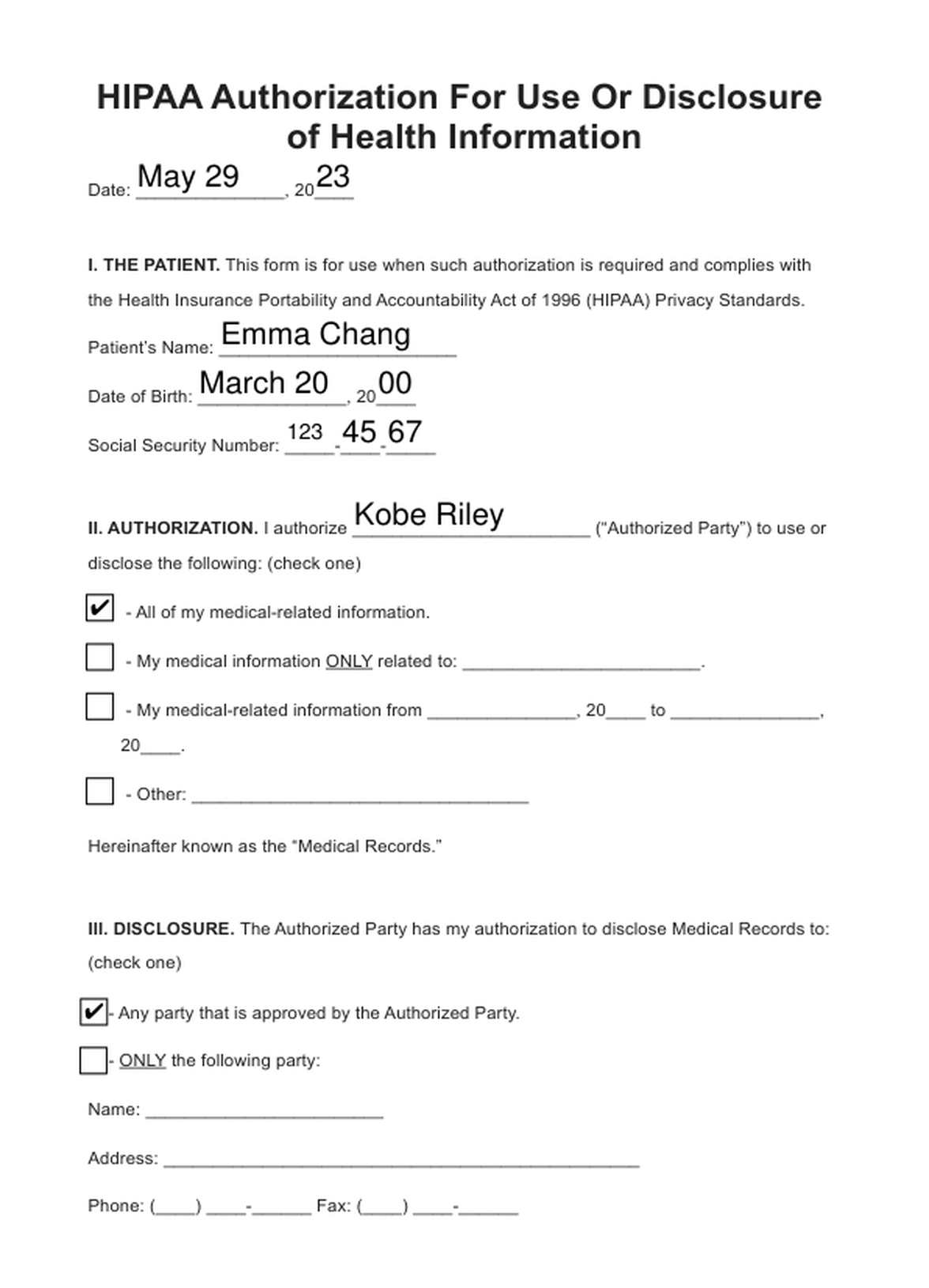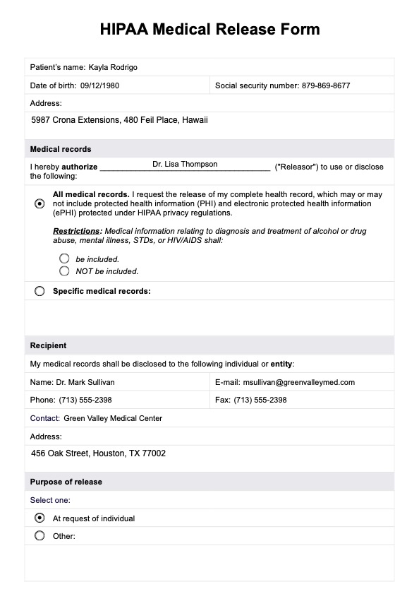 HIPAA Medical Release Form Template