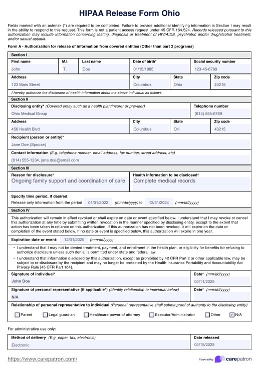 Download and learn more about the Ohio HIPAA Release Form for medical privacy to protect your patients' health information.