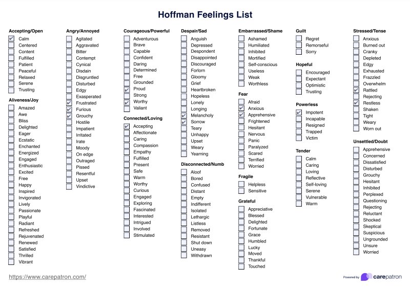 Hoffman Feelings List Template