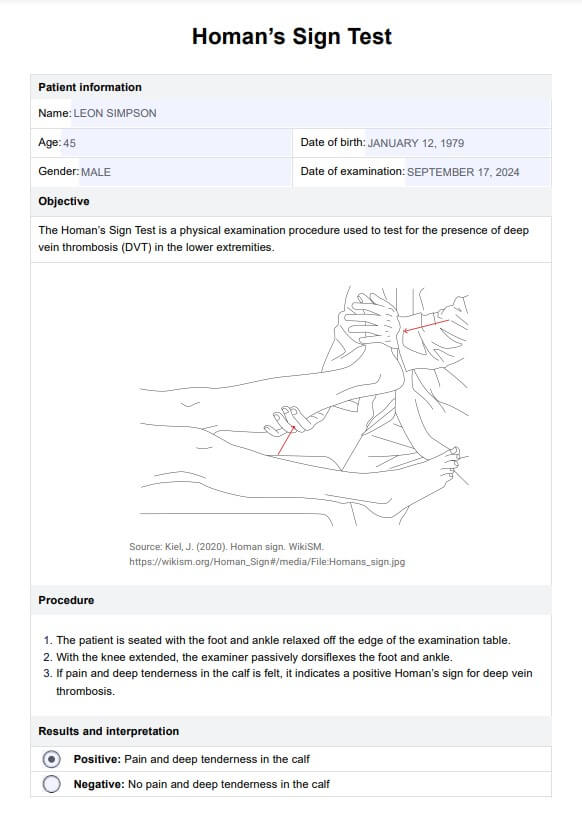 Learn about the Homans Sign Test and its uses, and download a free PDF template for easy implementation and evaluation of patients with suspected DVT.