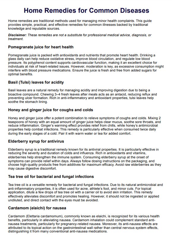 Discover effective home remedies for common diseases with Carepatron's free PDF download. Learn how to treat various ailments naturally.