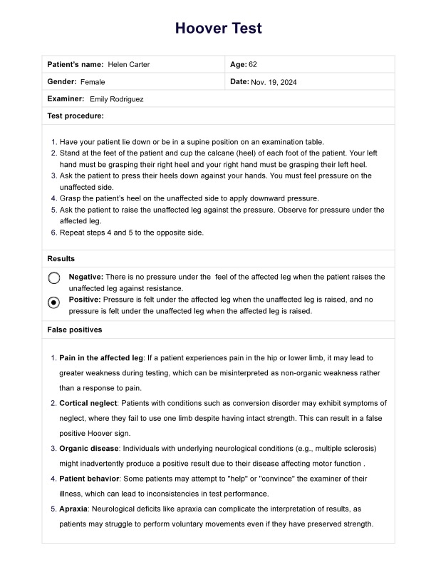 Use the Hoover Test to check functional weakness in the lower extremity, detect suspected malingering, or diagnose mild cases of hemiparesis in patients.