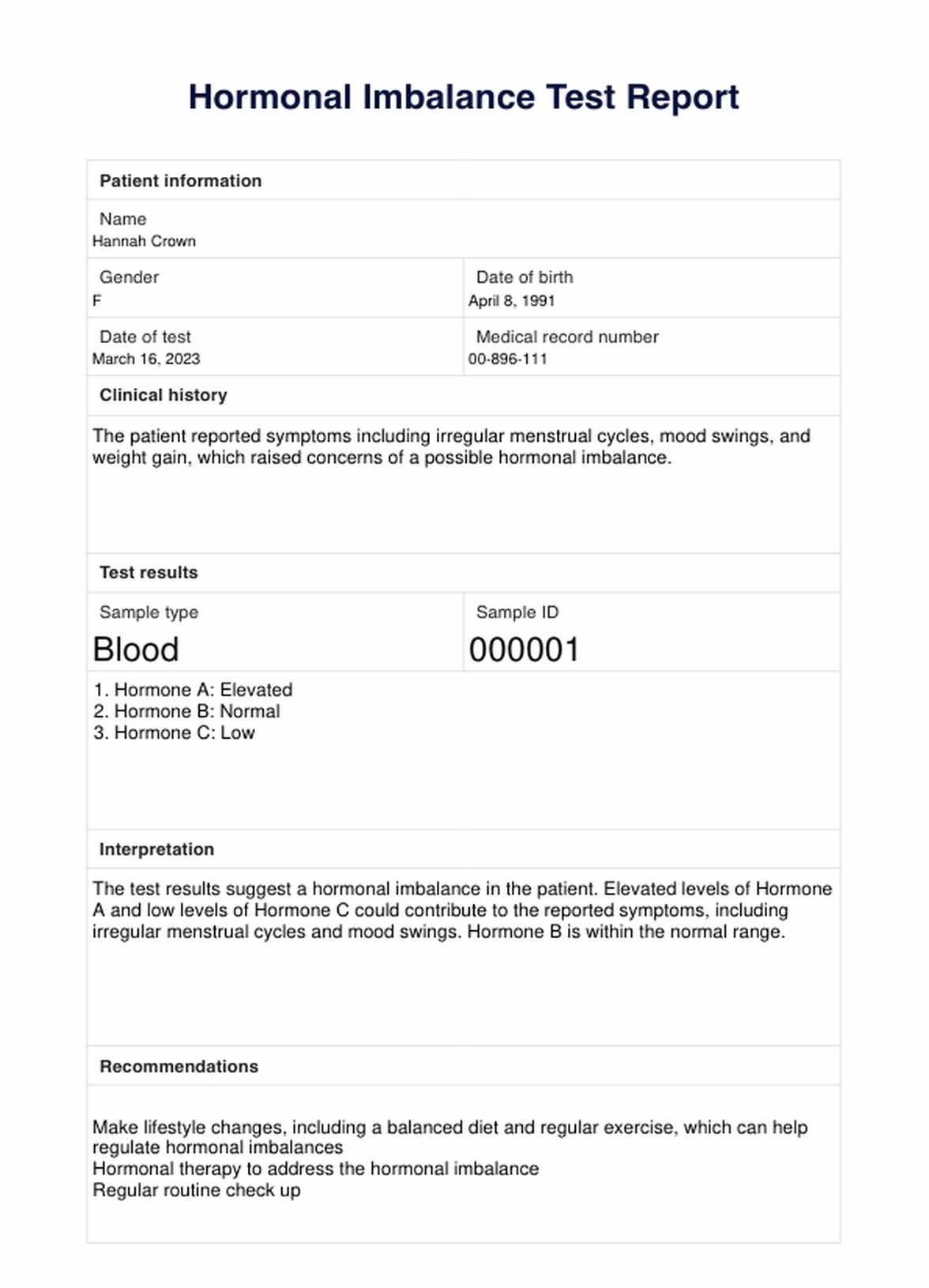 Get a free Hormonal Imbalance Test Report template and an example for reference. Learn about the importance of this test and how to interpret results.