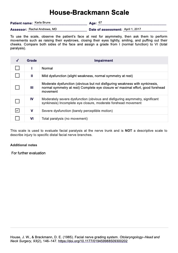 Learn how to use the House-Brackmann Scale for facial paralysis assessment. Download the free template now.