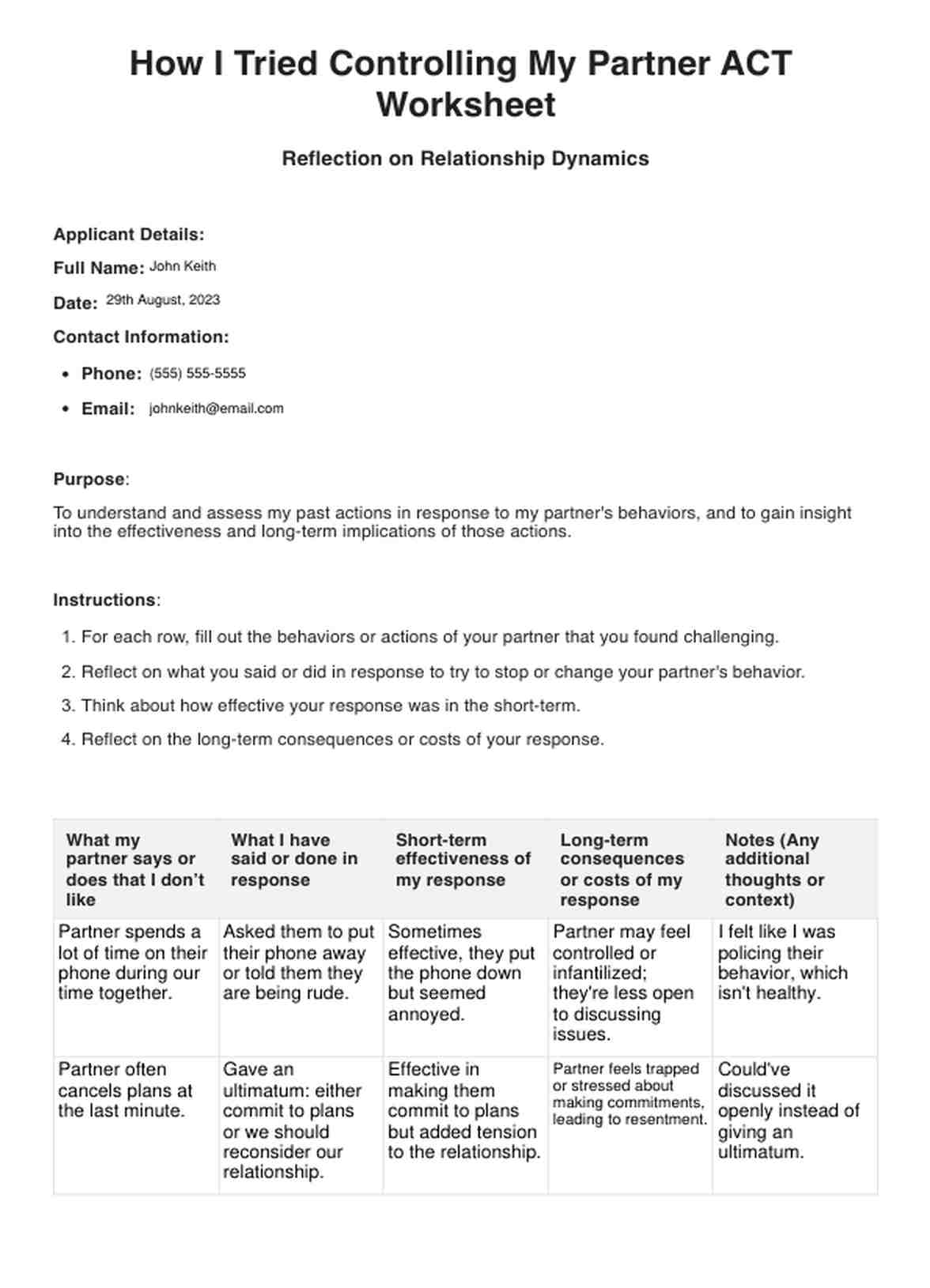 How I Tried Controlling My Partner ACT Worksheet
