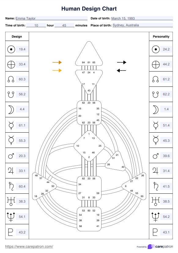 The free Human Design Chart Template is a valuable resource for documenting and interpreting a client’s unique chart. To begin, download the template from the website and save it to your device for easy access. During your session, gather the client’s birth information, including their city of birth, time, and date. Use this data to calculate their Human Design chart using a trusted tool. Once the chart is generated, complete the template by filling in details such as the client’s Type, Strategy, Authority, and key observations about their energy centers. Include personalized interpretations and insights in the notes section to ensure the document is clear and actionable.