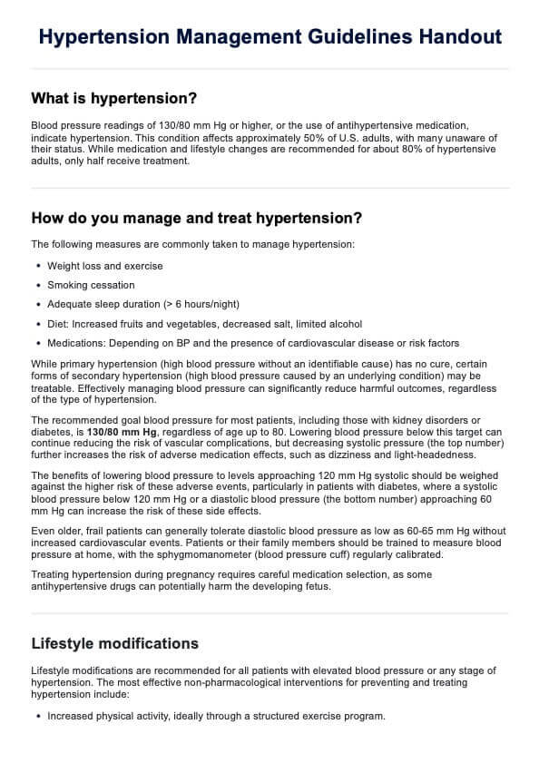 Hypertension Management Guidelines Handout Template