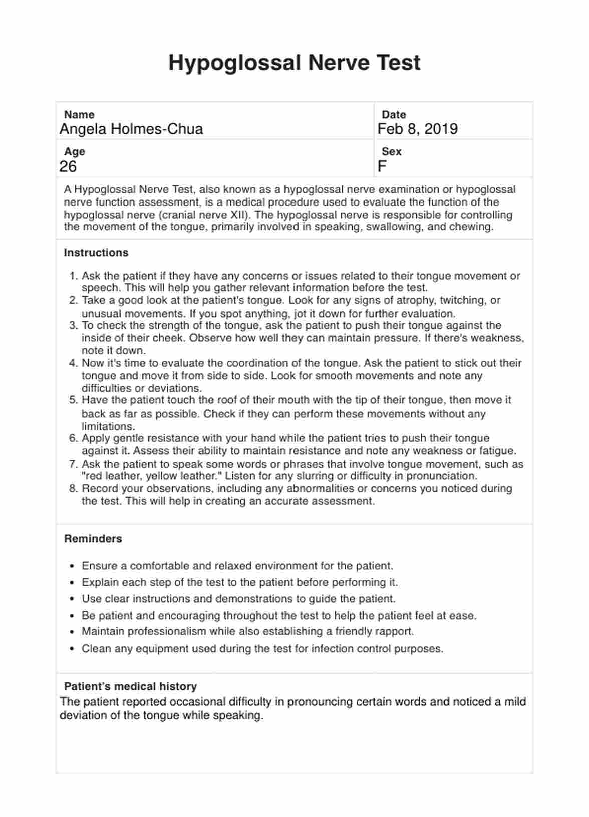 Get access to a free Hypoglossal Nerve Test PDF and example. Learn how this assessment can help diagnose potential nerve problems.