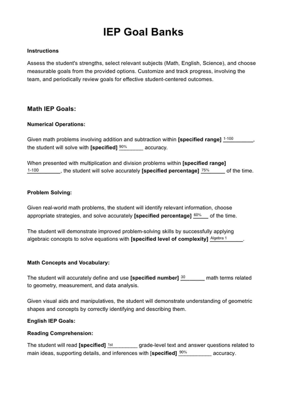 Access our comprehensive IEP Goal Bank; download a free PDF for personalized goal-setting and enhanced student progress.