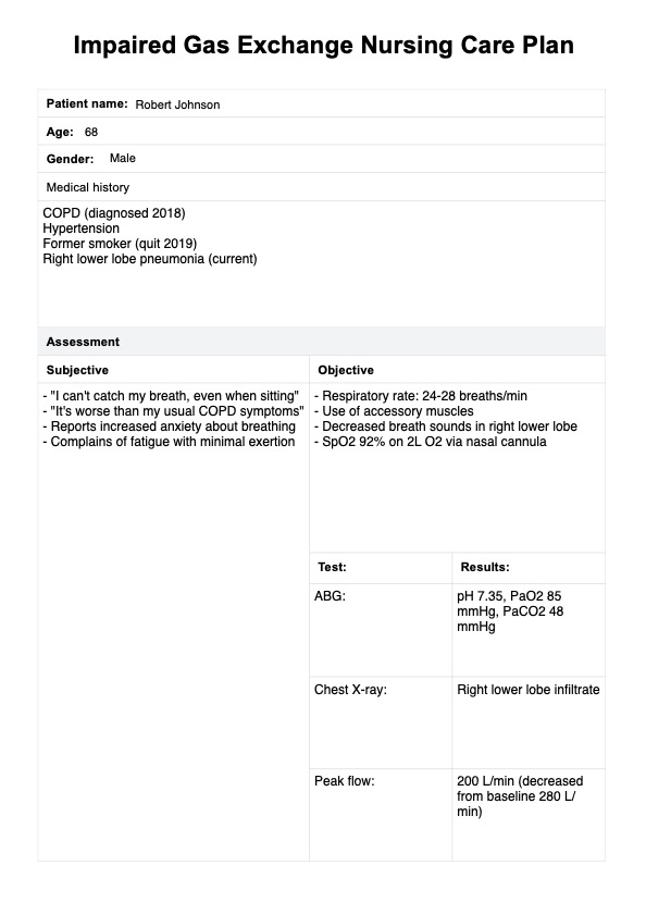Streamline patient care with our user-friendly Impaired Gas Exchange Nursing Care Plan Template. Tailor interventions for optimal respiratory management.