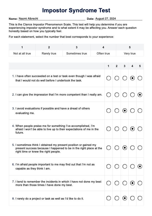 Impostor Syndrome Test Template
