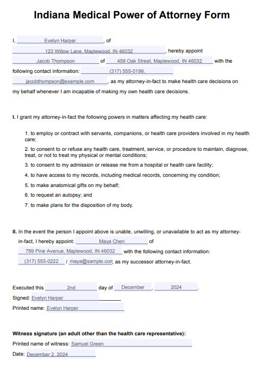 Download a free Indiana Medical Power of Attorney Form template to help your patients make crucial life and healthcare decisions with full authority in this customizable document.
