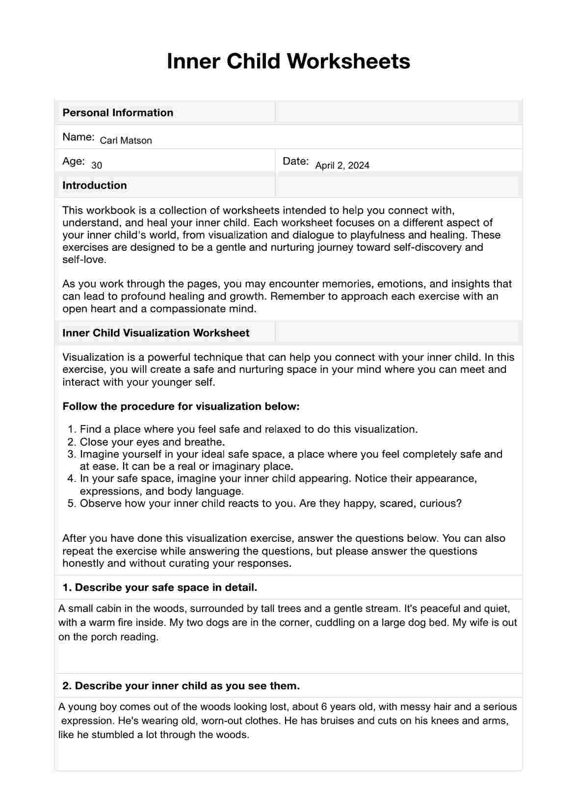Inner Child Worksheets PDF Template