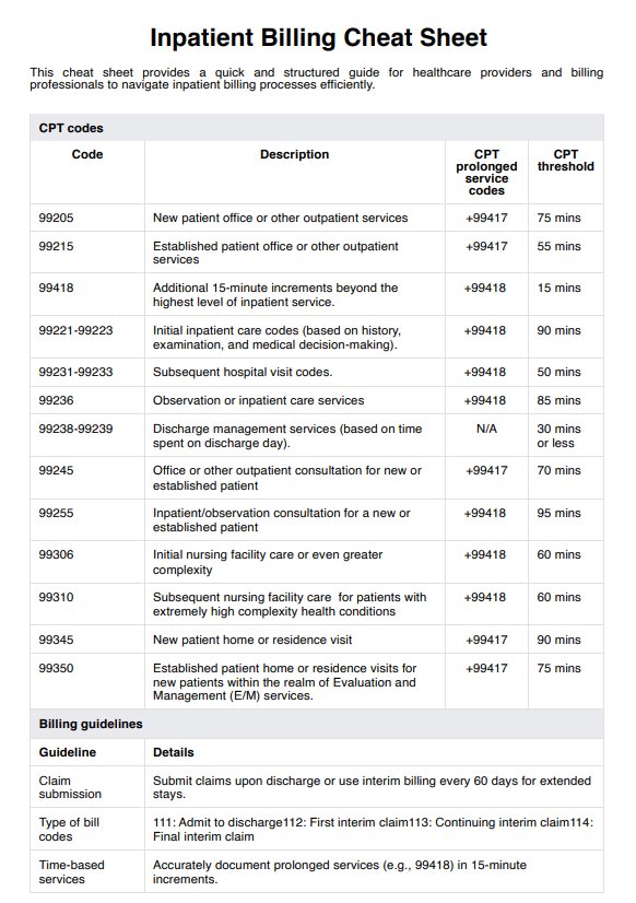Access Carepatron's free Inpatient Billing Cheat Sheet PDF to understand the complexities of inpatient billing processes.
