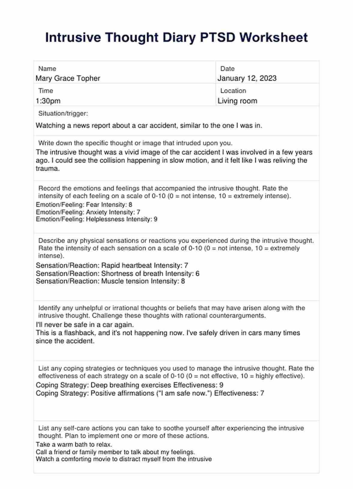 Discover how to use the Intrusive Thought Diary PTSD Worksheet for your clients. Access a free PDF template and example now.