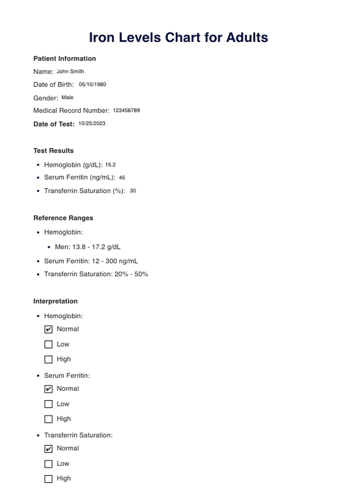 Download an Iron Levels Chart for adults - a comprehensive tool for tracking and interpreting iron-related test results. Ensure optimal iron health.