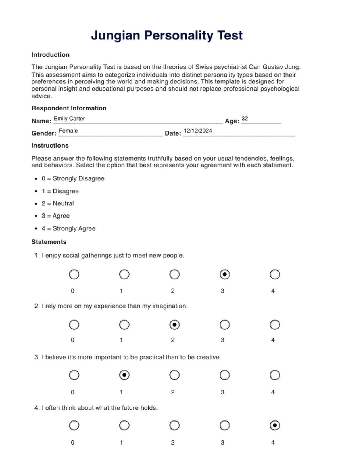 Jungian Personality Test Template