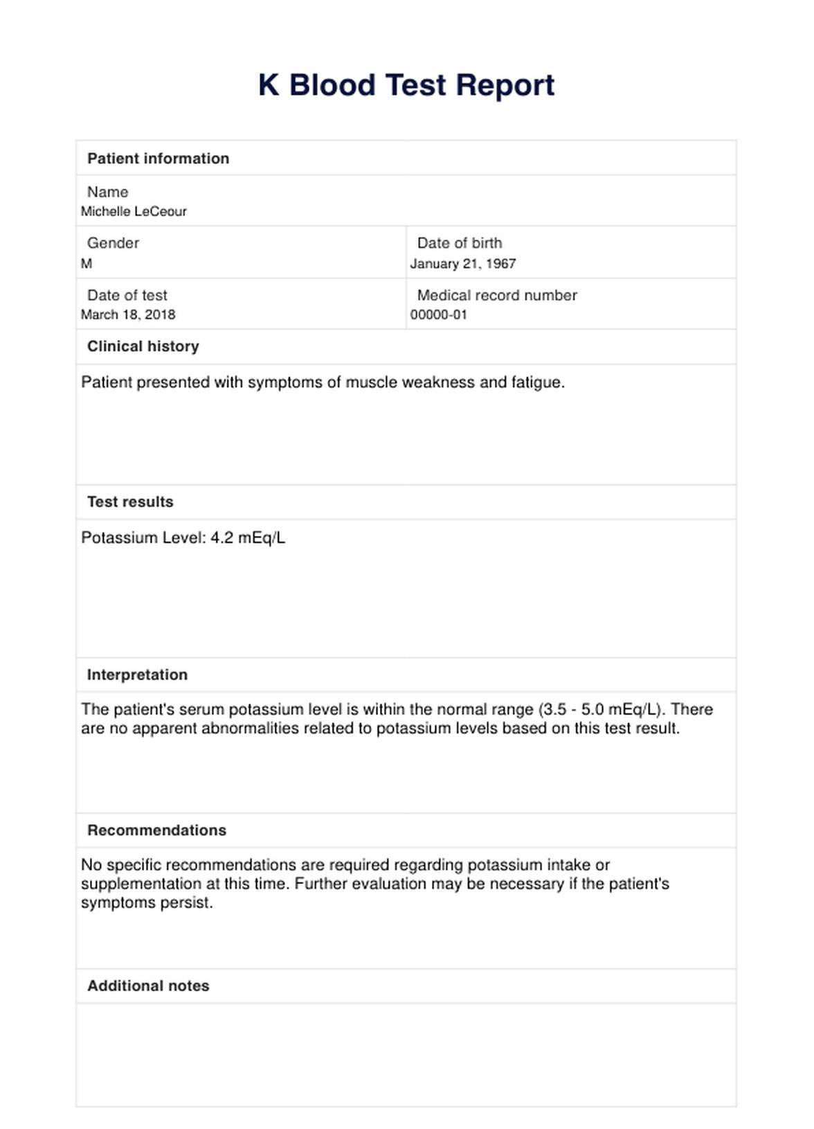 Learn about the importance of the K Blood Test and how to interpret results. Access a free template and example for your convenience.