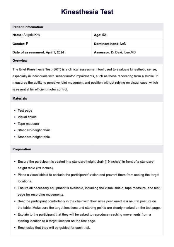 Explore how a Kinesthesia Test works. Get access to a free test template for your patients.