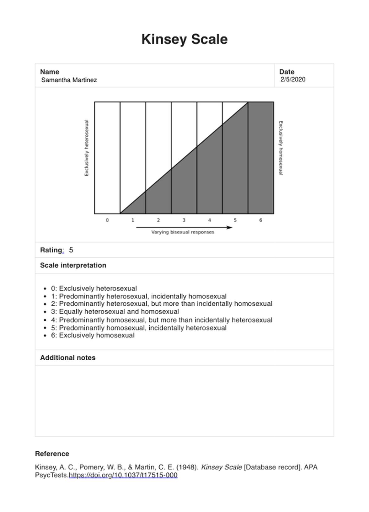 Get access to a free Kinsey Scale PDF template and example. Learn more about this scale and its six-point rating system.