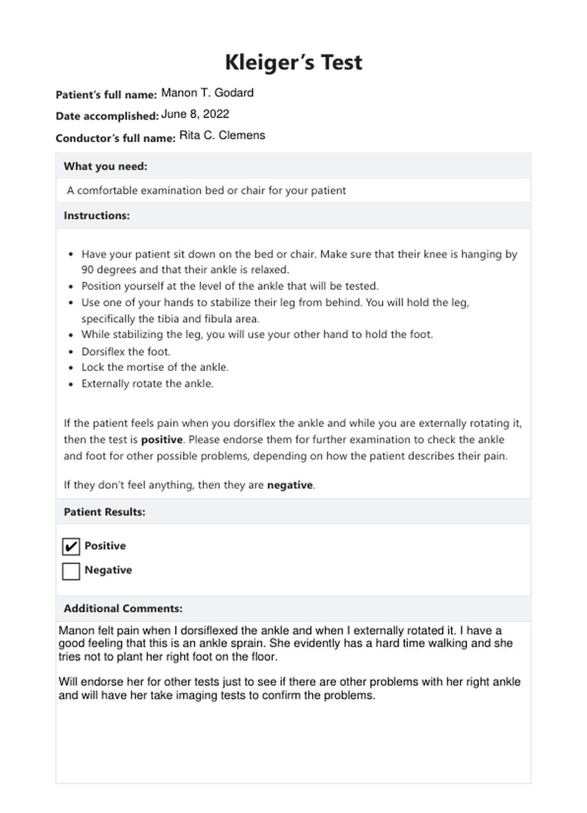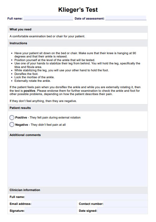 The Kleiger's Test may cause discomfort, particularly if the patient has an ankle sprain, but it should not be excruciating when performed correctly.