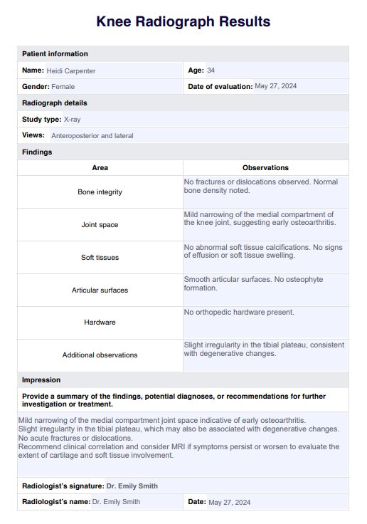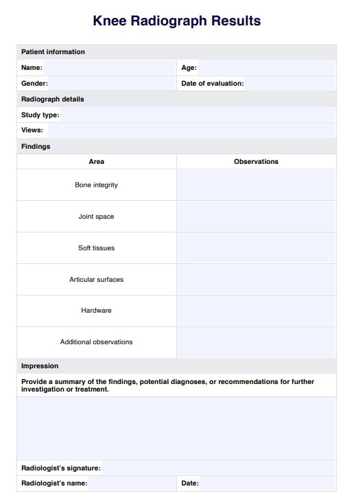 Discover our comprehensive knee radiograph results template for diagnosing and managing knee conditions.