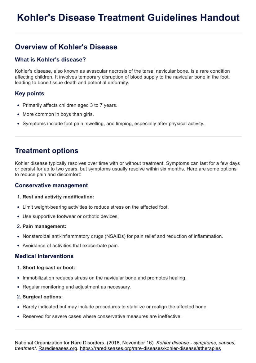 Kohler's Disease Treatment Guidelines Handout Template