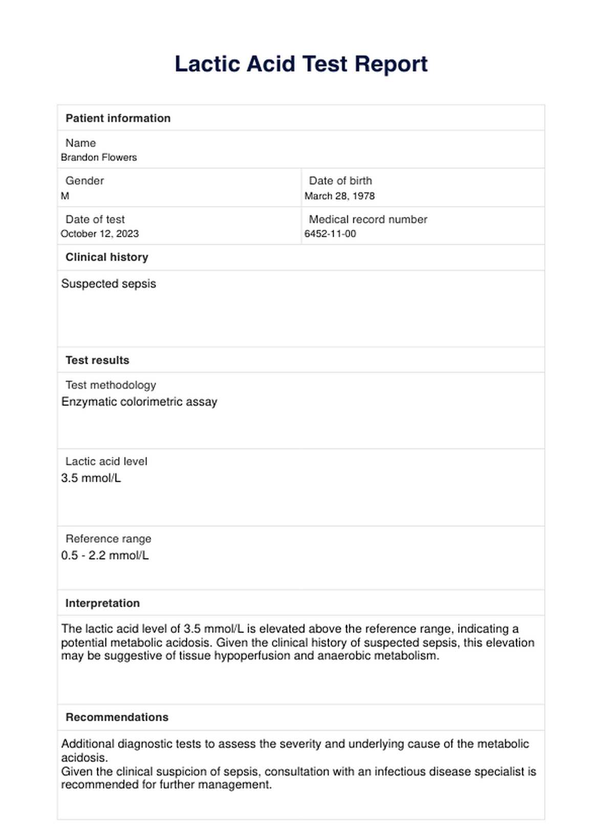 Get access to a Lactic Acid Test Report template for easy record-keeping. Learn more about Lactic Acid Tests and how to interpret test results.