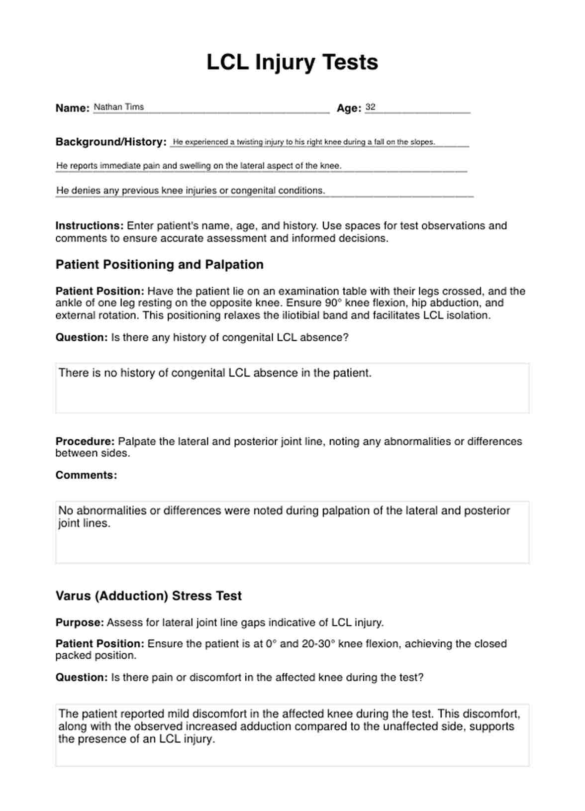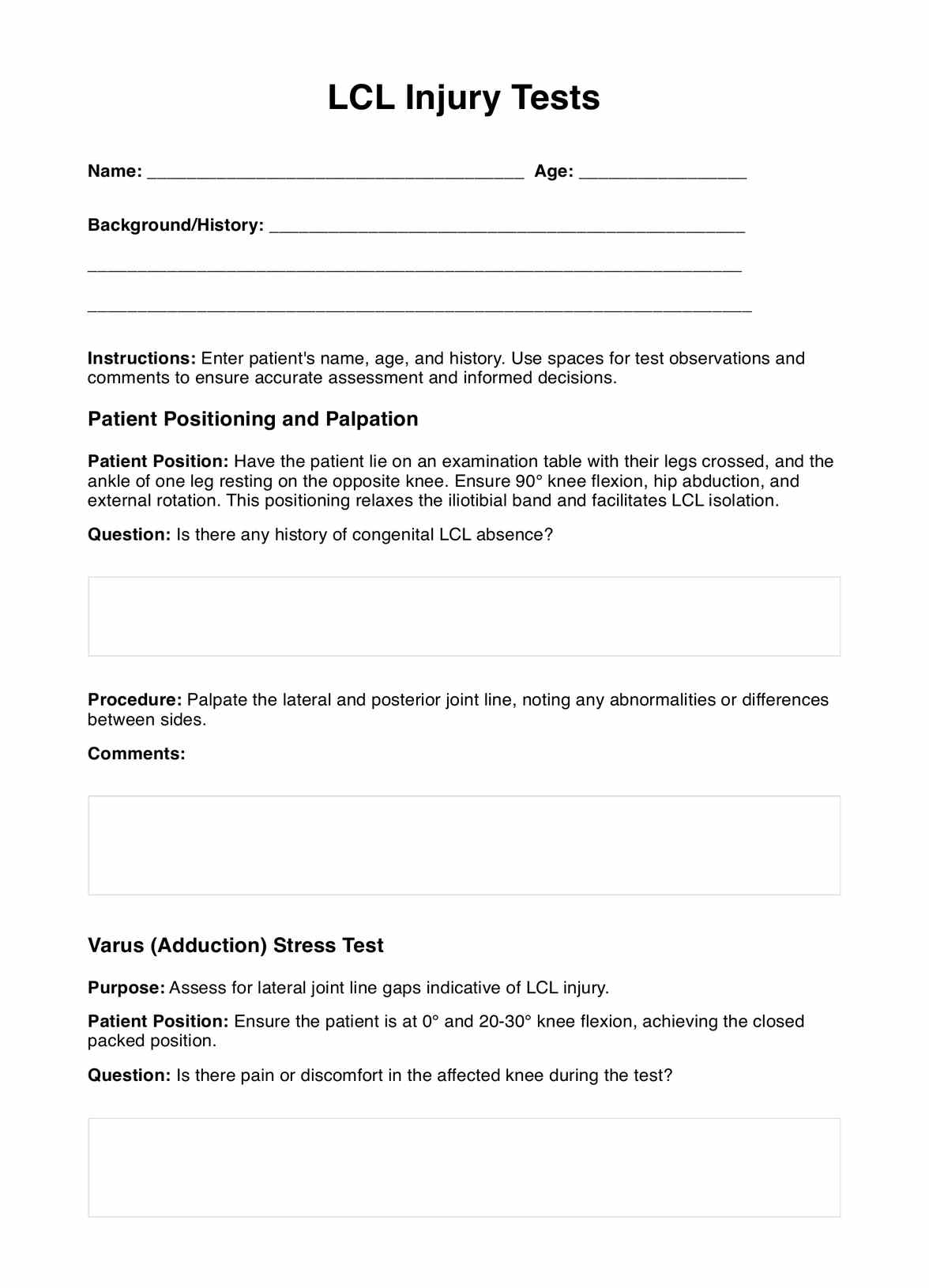 LCL Injury Tests are used when a patient presents with knee discomfort, mobility issues, or a history of trauma. They are employed to evaluate suspected LCL injuries, especially in scenarios involving sports-related incidents, accidents, or other instances where knee ligament damage is a concern.