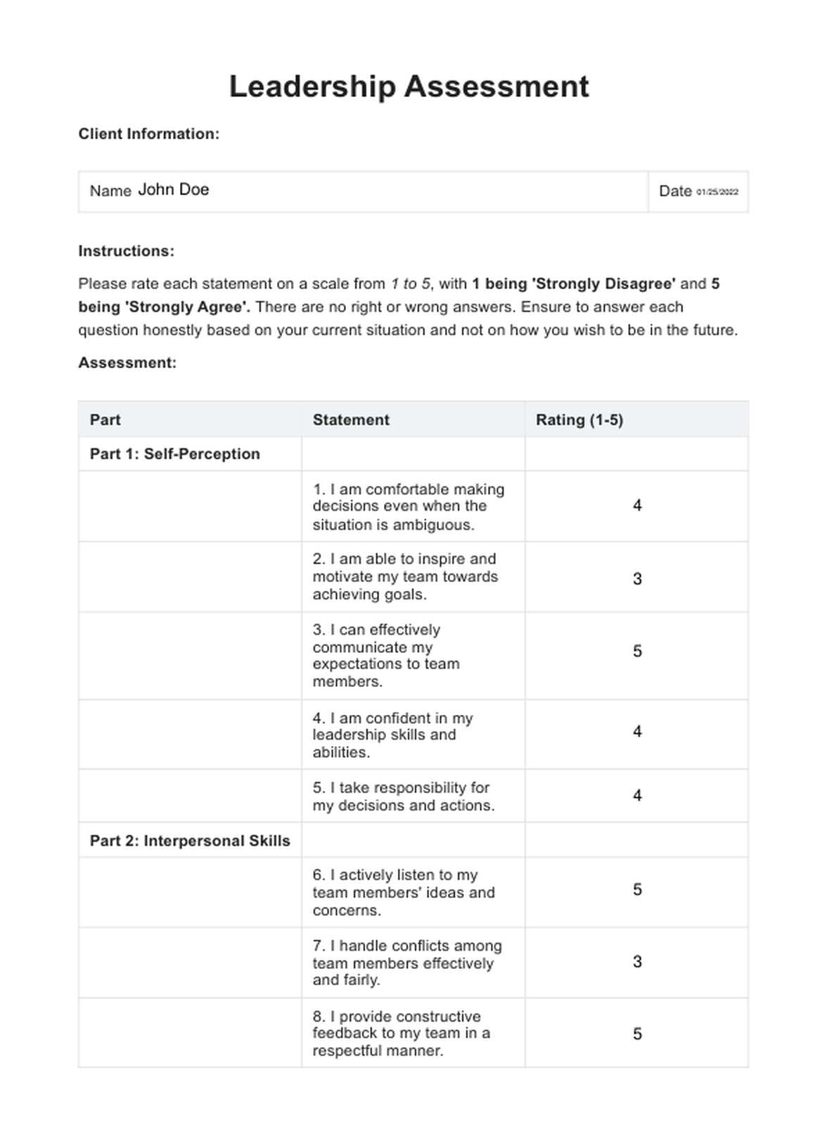 The scores of this Leadership Assessment are typically interpreted by looking at both the overall score and the scores in specific areas. A higher overall score indicates more vital leadership abilities. Scores in particular areas can highlight strengths and reveal areas needing improvement.