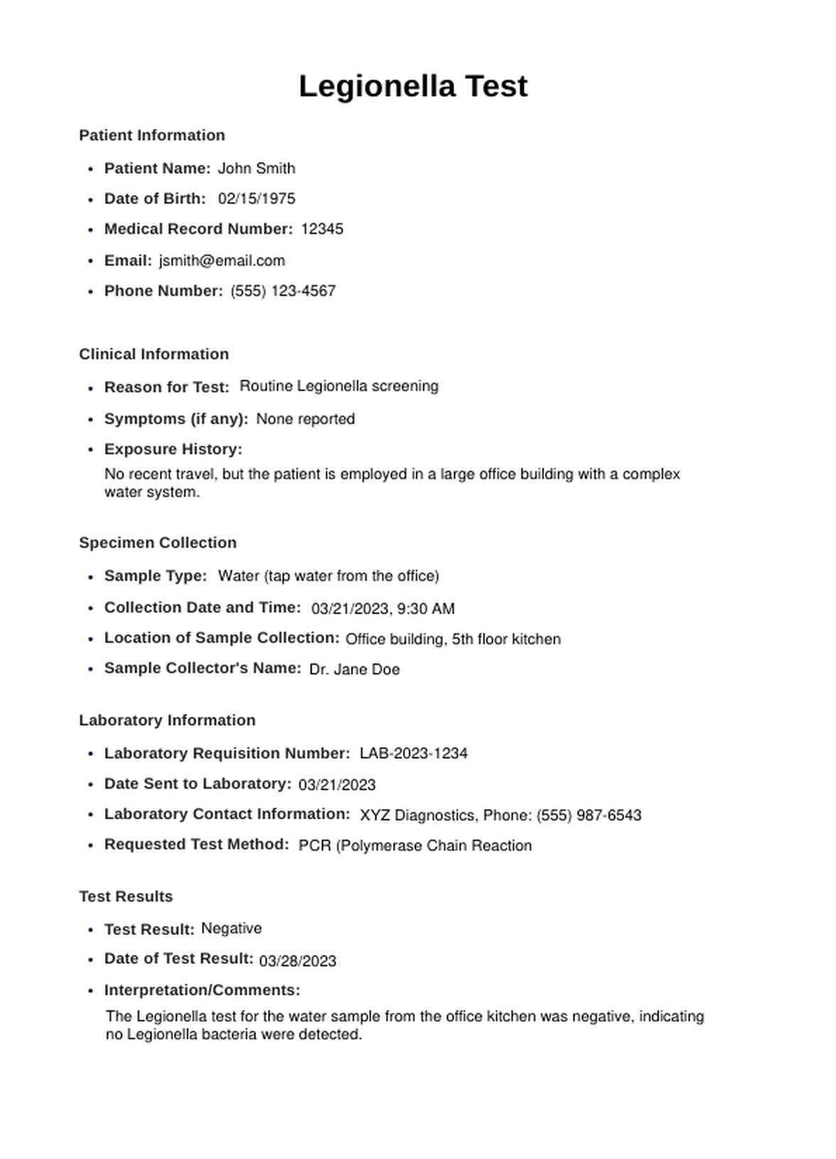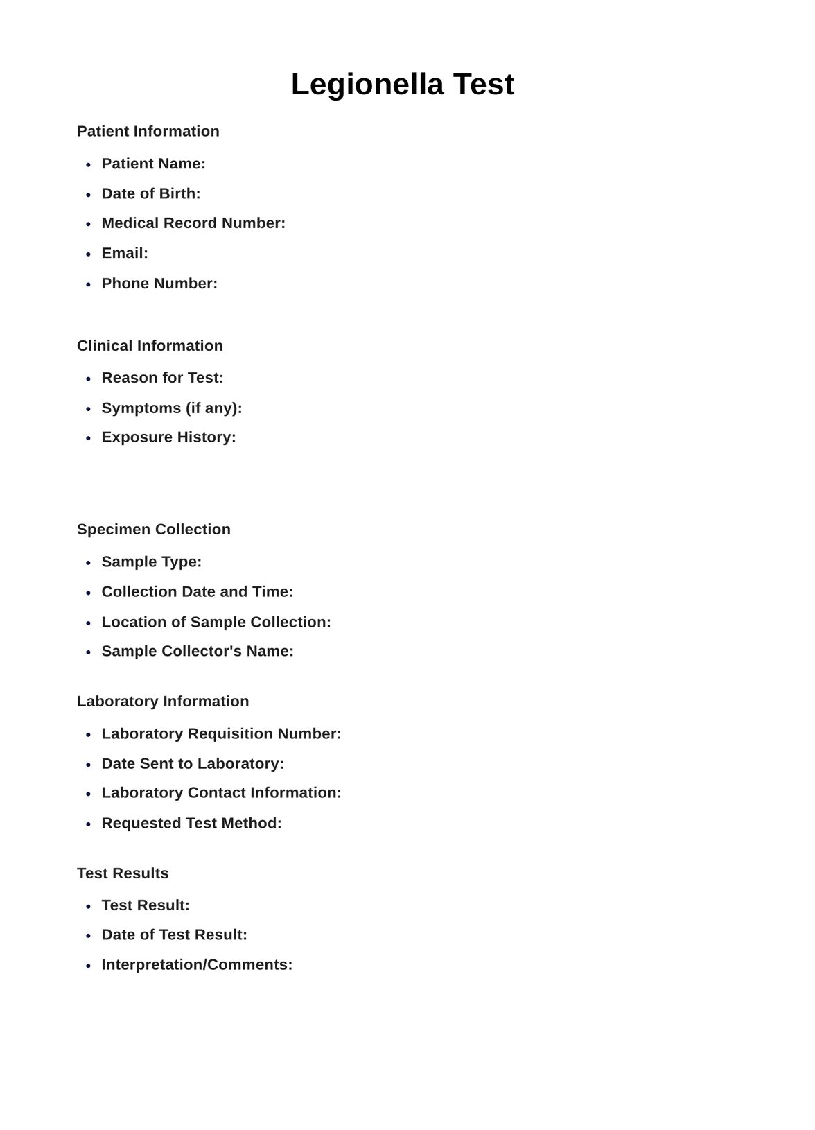 Efficient Legionella testing for water system safety. Download the Legionella Test PDF template to streamline documentation in medical practices.