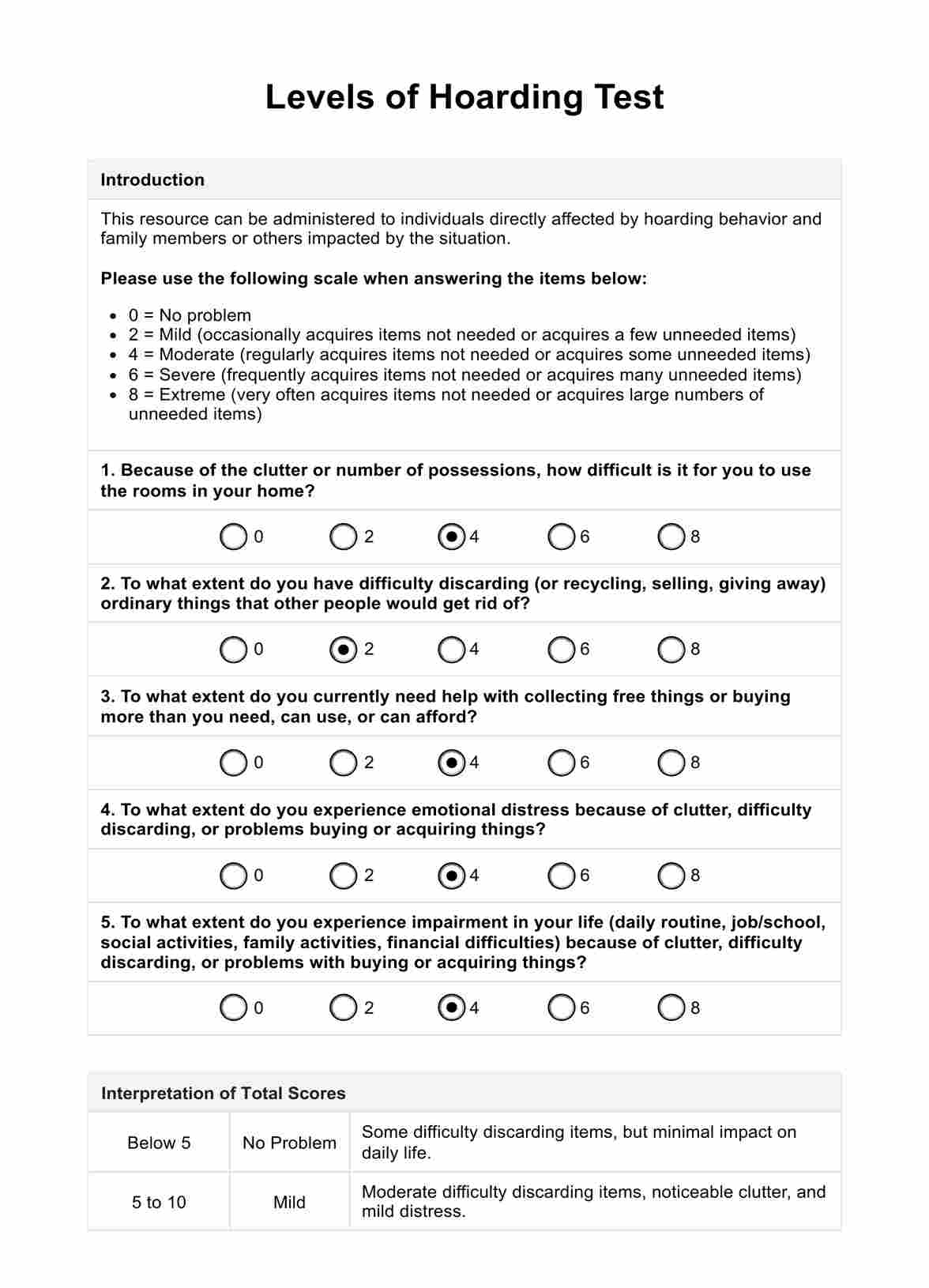 Levels of Hoarding Test Template