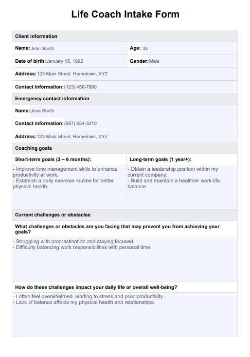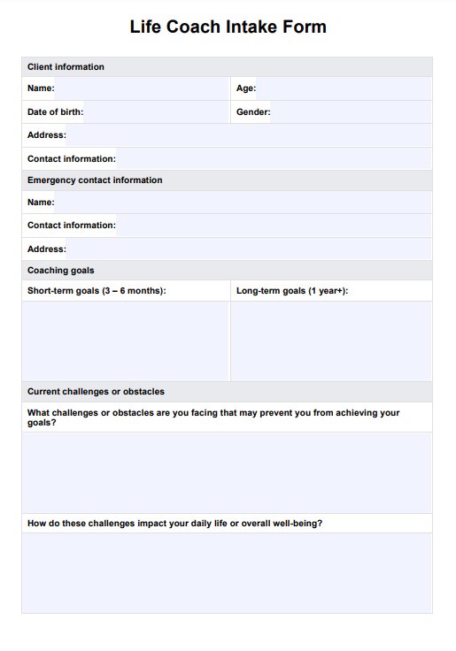 Life Coach Intake Form Template