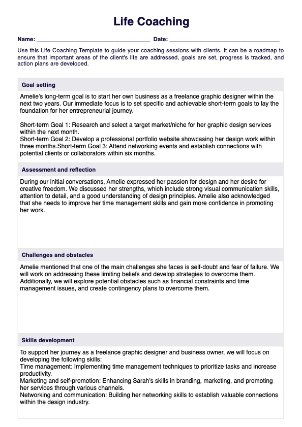 Enhance your life coaching sessions with our free Life Coaching Template. Streamline your coaching process and empower your clients to achieve their goals.
