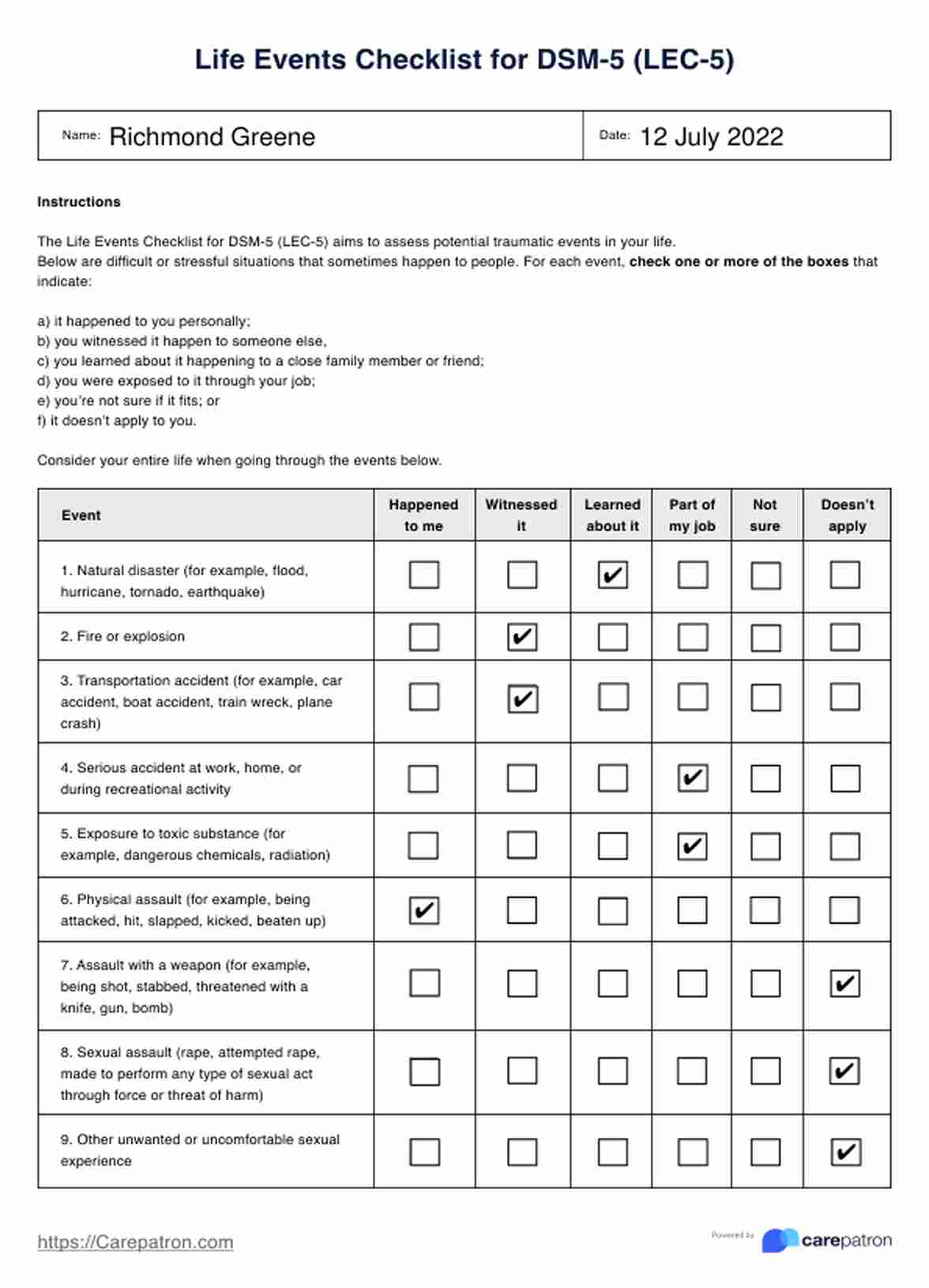 Interpreting the results of the Life Events Checklist can be tricky, as it's not necessarily a diagnostic tool but instead is used to gather data on potential triggers and stressors in a patient’s life.
