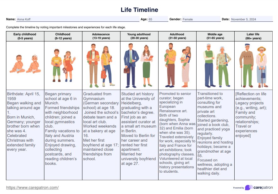 The Life Timeline Template can help individuals reflect on significant life events, gain insights into their personal journeys, and set future goals. Mental health professionals can also use this tool during sessions to facilitate discussions and enhance client self-awareness.