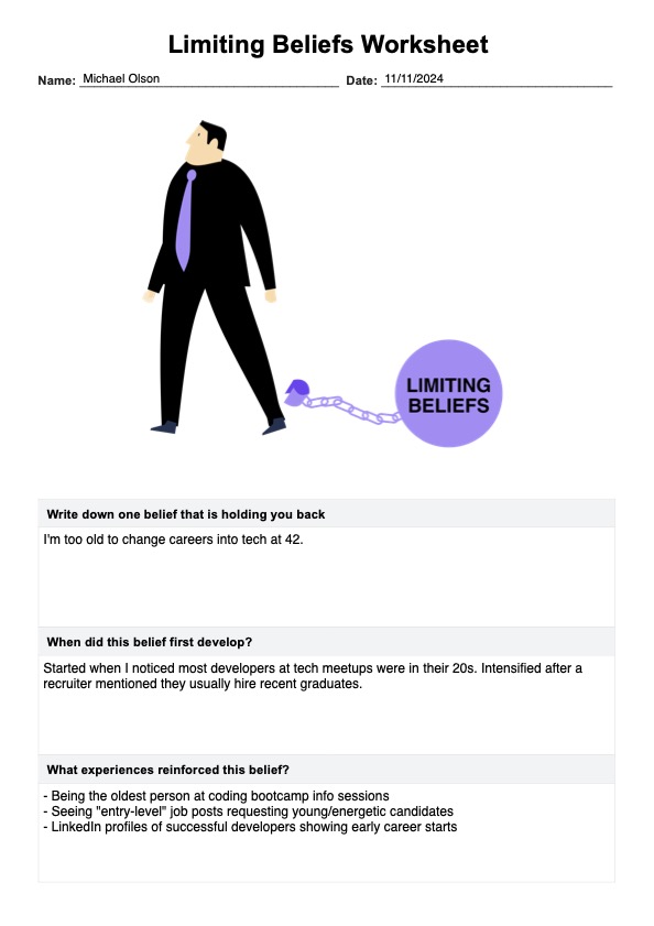 Help clients identify and overcome self-limiting beliefs with our Limiting Beliefs Worksheet.