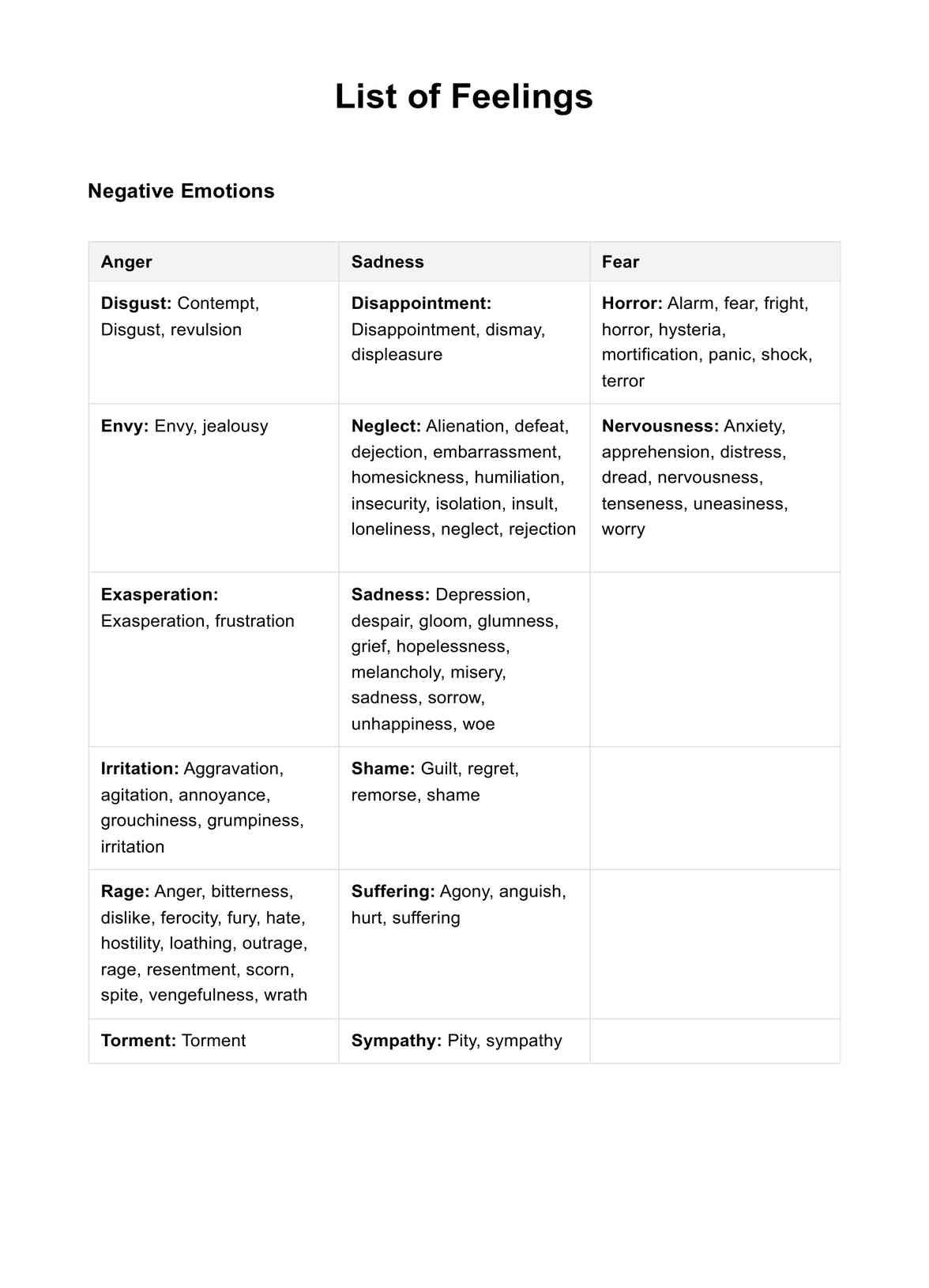 Access a List of Feelings and examples available for free. Download to help someone enhance emotional understanding.