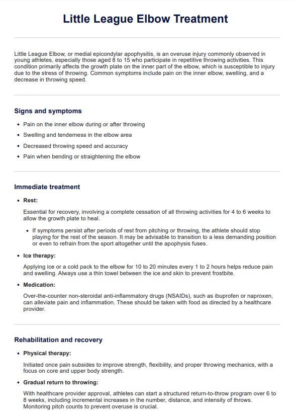 Little League Elbow Treatment Template