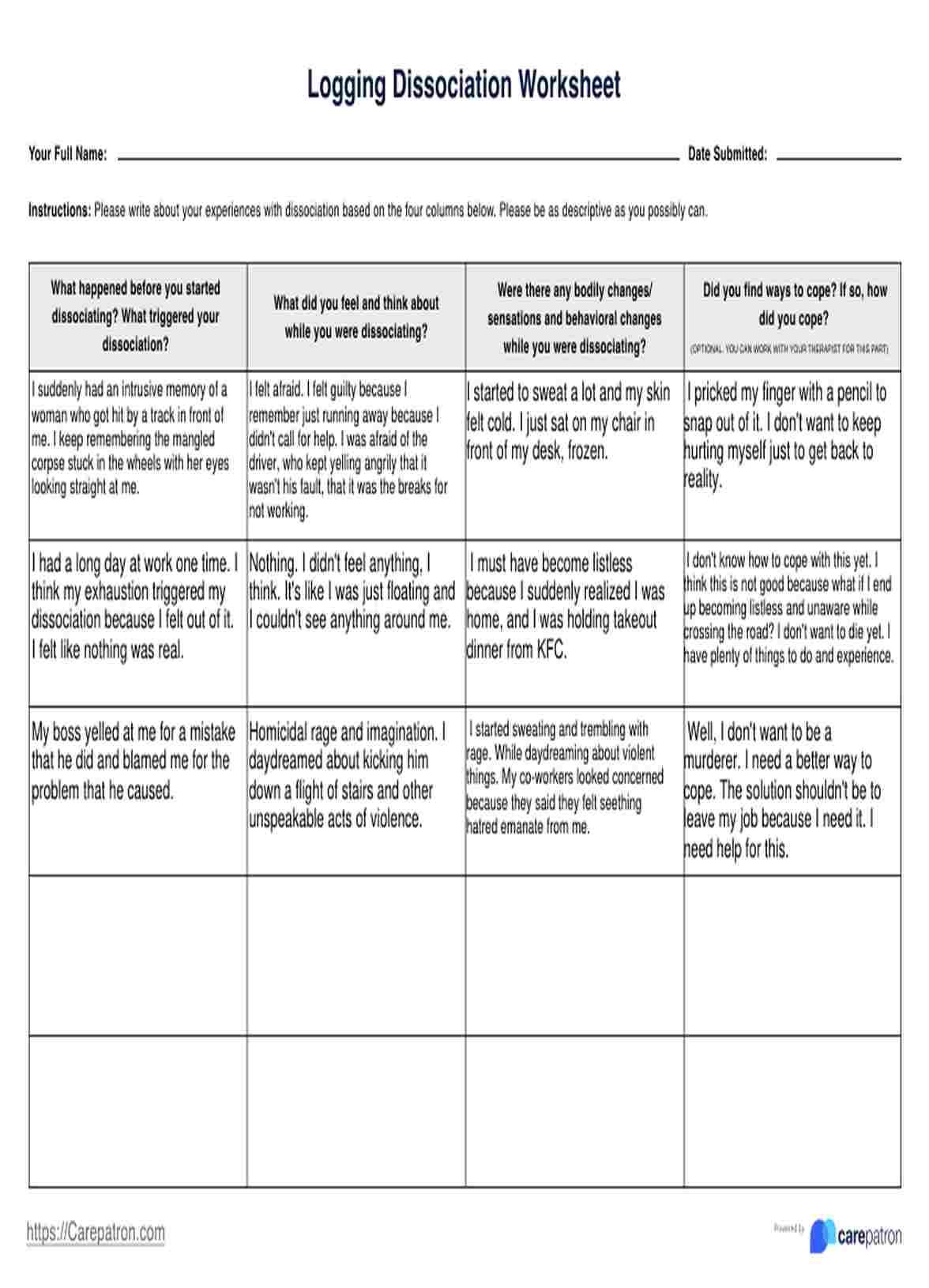 Discover how to use the Logging Dissociation Worksheet to help patients mange their dissociative experiences. Download our free template and PDF now.
