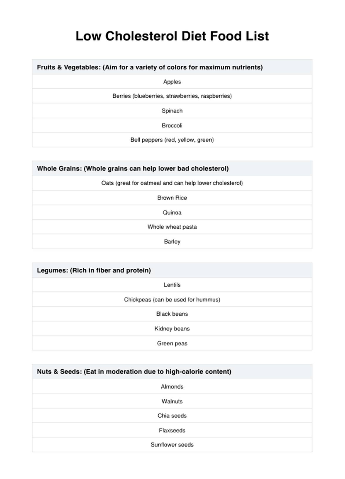 Low Cholesterol Diet Food Lists are used as a guide for individuals to make healthier food choices. The list categorizes foods based on their nutritional benefits and impact on cholesterol levels. Individuals can refer to the list when grocery shopping, meal planning, or dining out to ensure they consume foods that align with their cholesterol management goals.