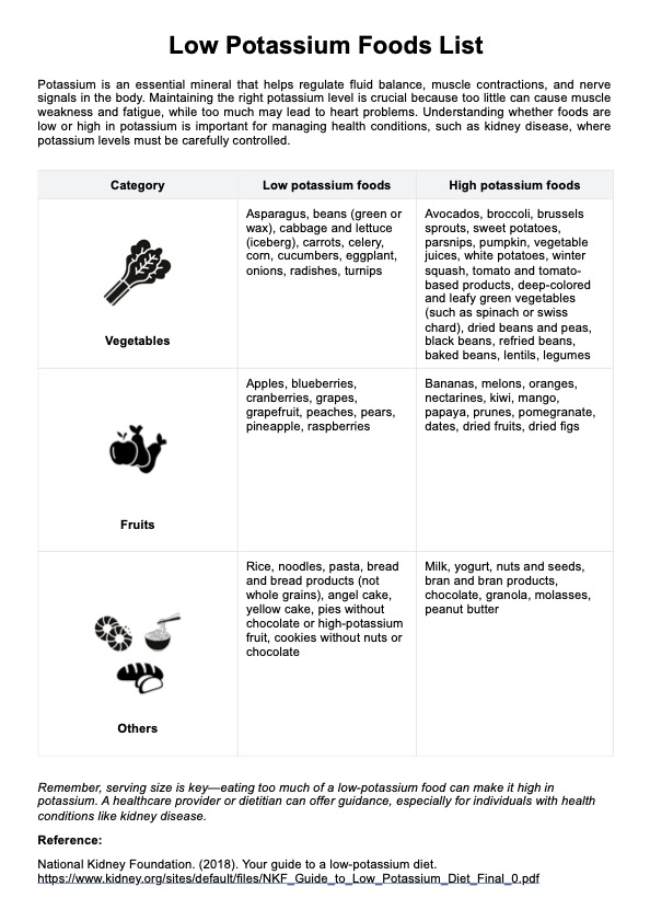 Ensure your patient with elevated potassium levels has a low potassium food list to manage their health and condition better.