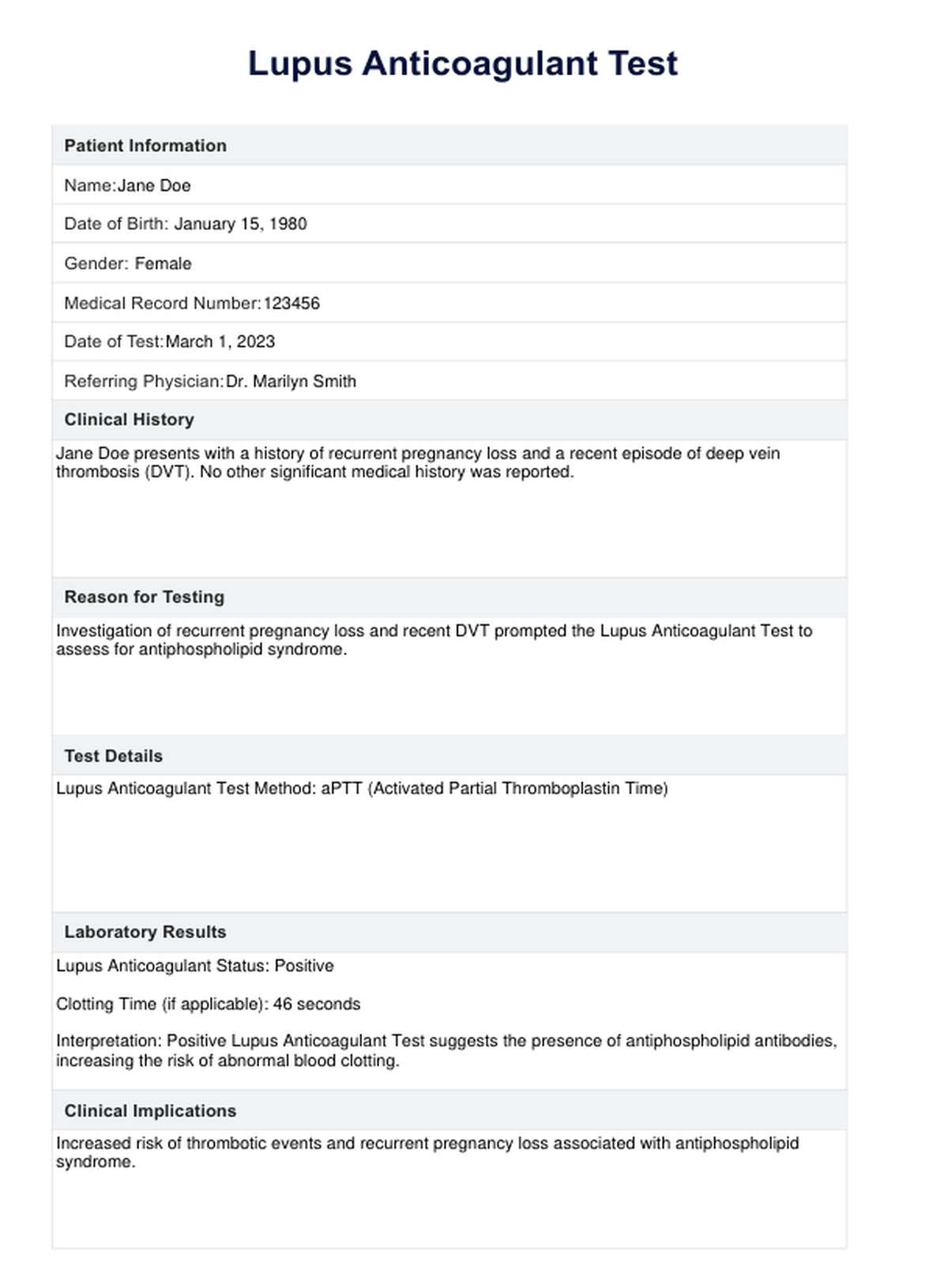 Lupus Anticoagulant Test Template
