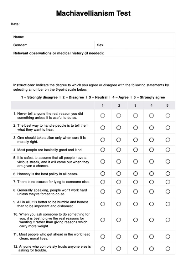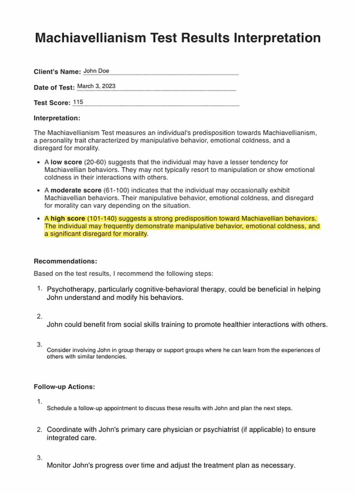 The Machiavellianism Test is a questionnaire that individuals fill out. The responses are then scored and interpreted to determine the individual's level of Machiavellianism. The results can provide valuable insights into an individual's personality traits and potential behaviors.
