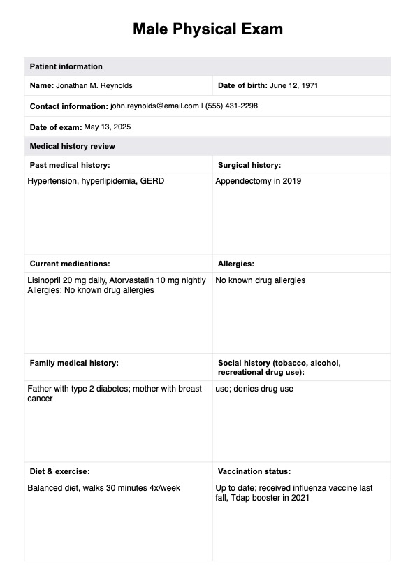 Male Physical Exam Template
